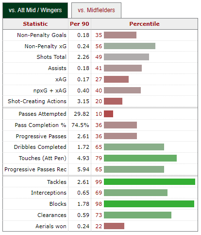 Just to mention, comparisons here are being made against other wingers and attacking midfielders in the top five European leagues and also the top two continental competitions.